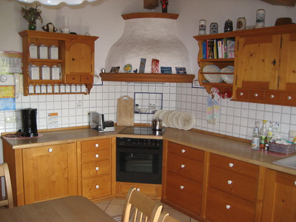 Küche in Fichte mit Ahorn Arbeitsplatte